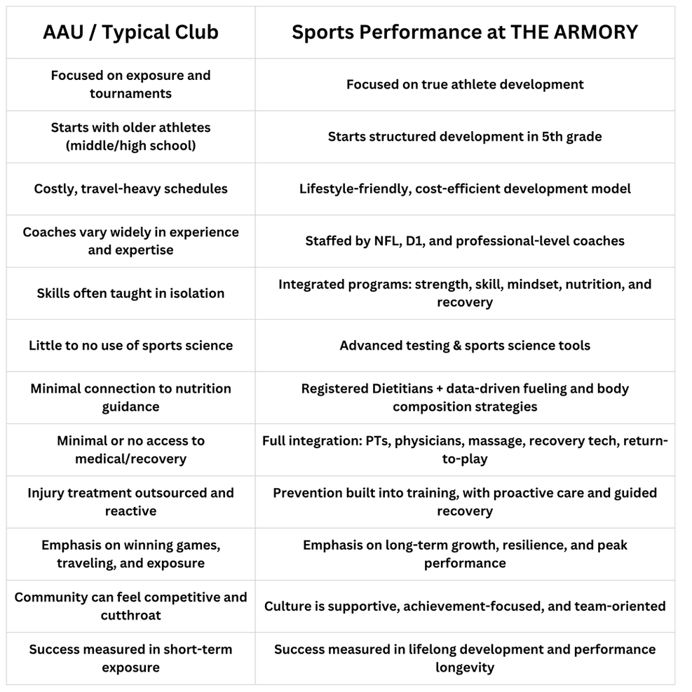 Sports Performance at THE ARMORY isn’t about hype or exposure—it’s about development.